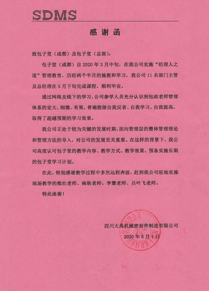 ?????? 2020年5月下旬,公司全體干部從“成都包子堂互聯(lián)網(wǎng)大學”順利結(jié)業(yè)!